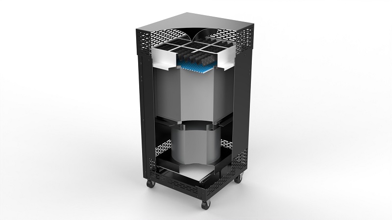 BLADE HCFM-1-99 Portable Floor Standing Commercial Dust Collector and Fume Extractor Air PurifierThe top-rated BLADE HCFM-1-99 Portable Commercial Large Room CARB Certified HEPA Filter and Carbon Scrubber Air Purification System with the best 360 degree intake and output quickly removes over 99.97% of dangerous particles, PM 2.5, mold spores, dust, dust mites, light odors and VOC's with a MERV 8 pre-filter, a true commercial grade 12 inch thick particle removing HEPA filter and a 2 inch thick fume eliminating activated carbon scrubber. The powerful BLADE HCFM-1 portable indoor industrial grade particle collector and fume removing air filtration machine also features the highest airflow and largest room coverage in its class, with a powerful 1019 CFM motor and up to 530 CFM CADR (clean air delivery rate) for 5.9 air changes per hour in 600 square foot rooms with 9 foot ceilings. The highly rated BLADE air purifier unit can also provide 2.0 air changes per hour in rooms up to 1400 square feet while still providing solid 360 degree, third party validated air quality improvement and protection from airborne contaminants while keeping the number of units to a minimum.