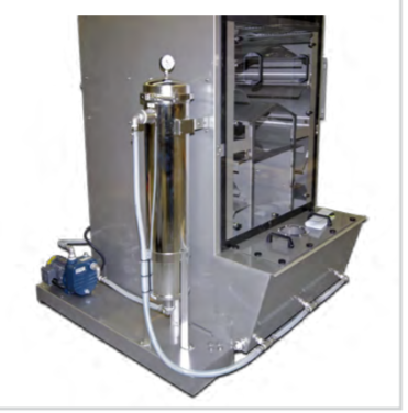 The collector can be ducted directly into an industrial machine such as a widebelt sander to extract combustible dust at its source. Diversitech’s Wet collectors are 99% efficient with particles 3 microns and larger. When dealing with sub-micron particulate, a HEPA after-filter is required to achieve the correct filtration efficiency. The HEPA after-filter can be added below if this is needed for your application.