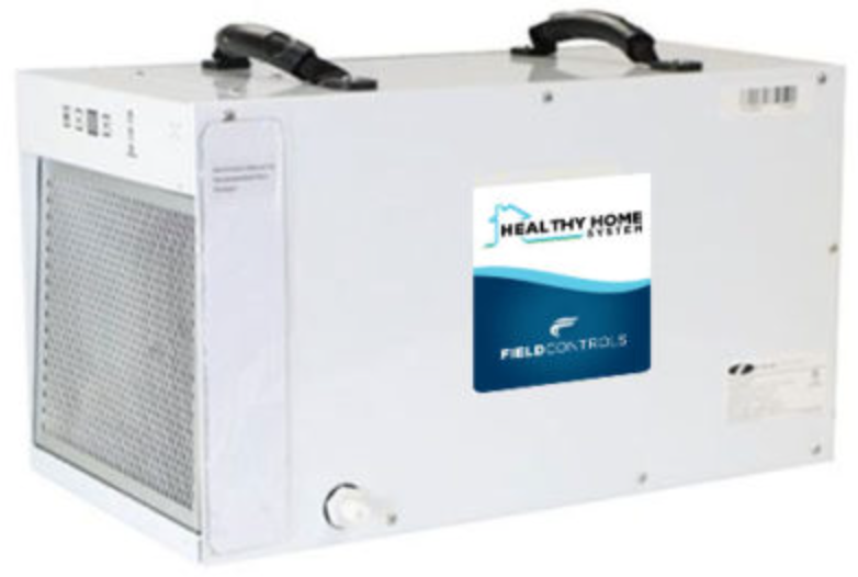 Field Controls whole house dehumidifiers feature an integrated dehumidistat to monitor the conditioned space and be able to set and maintain your desired humidity. When the relative humidity rises above the selected setpoint, the powerful dehumidifier will energize. Air is then drawn across an evaporator coil, which is cooler than the dew point air. This causes moisture to condense out of the air. The air is then reheated through the condenser coil and distributed back into the room. The FC-120DH whole home HVAC dehumidifier works by condensing moisture from the air as it comes through, robbing mold and bacteria of the moisture they need to grow. The FC-120DH moisture removal system will extract and eliminate up to 120 pints of moisture per day. If you're not sure how much moisture you need to remove to achieve your desired humidity, give us a call toll-free at 800-701-2513 and we'll be happy to calculate it for you :)